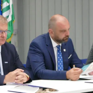 Zaprešić, 11. srpnja 2022. – Poboljšanje vodno-komunalne infrastrukture aglomeracije Zaprešić nastavlja se rekonstrukcijom i nadogradnjom uređaja za pročišćavanje otpadnih voda. Nova je ovo faza u projektu pa su se tom prigodom na konferenciji za medije okupili najvažniji dionici sa svih institucionalnih razina. Tako su u pratnji direktora Vodoopskrbe i odvodnje Zaprešić d.o.o. Domagoja Mikuša državni tajnik Ministarstva gospodarstva i održivog razvoja Mario Šiljeg, gradonačelnik Zaprešića Željko Turk i generalni direktor Hrvatskih voda Zoran Đuroković obišli aktivna gradilišta kao i lokaciju na kojoj su već počeli radovi na uređaju za pročišćavanje otpadnih voda.