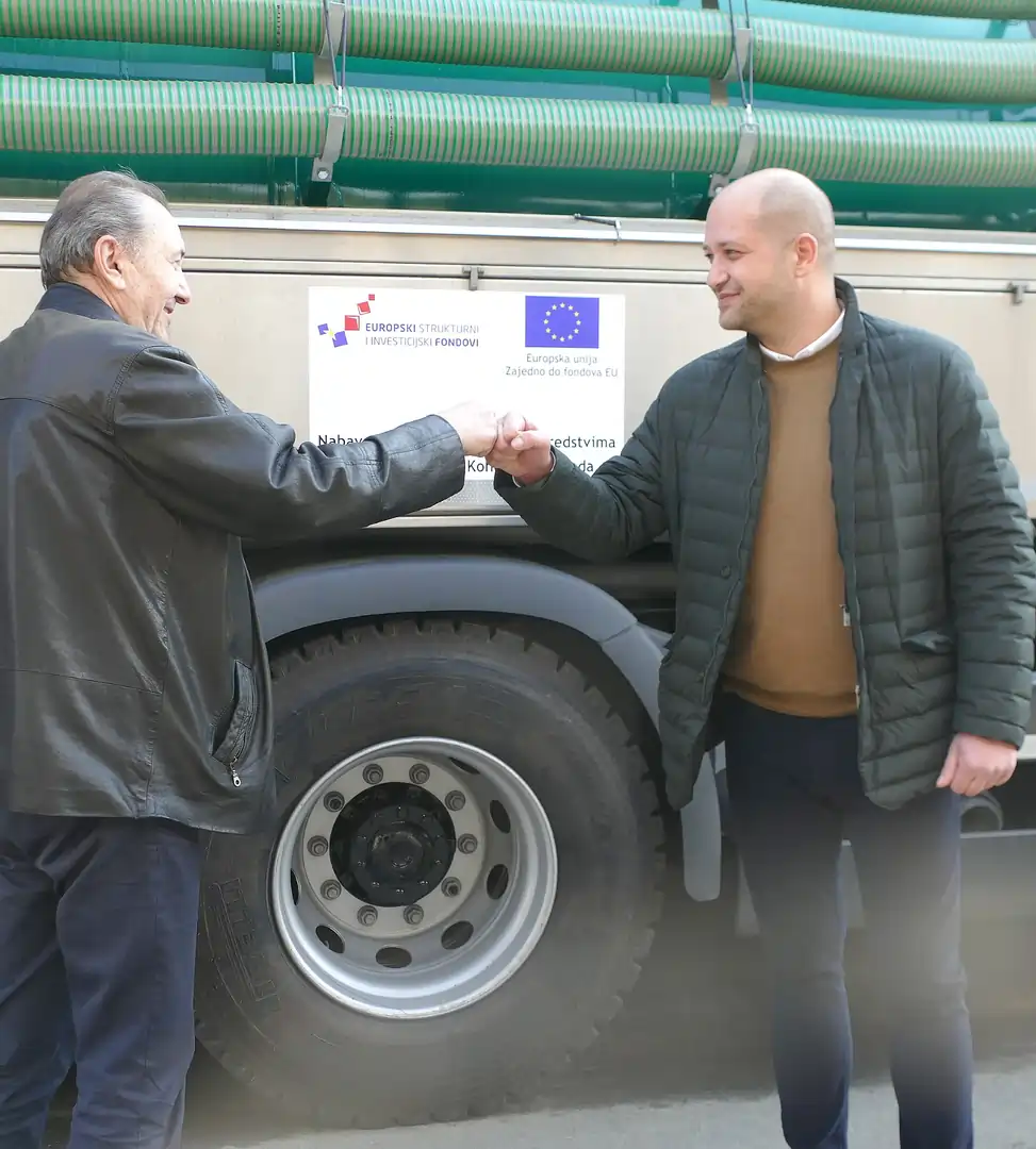 Zaprešić, 10. ožujka 2021. – Suvremeno vozilo za čišćenje sustava odvodnje na području aglomeracije Zaprešić danas je isporučeno Vodoopskrbi i odvodnji Zaprešić d.o.o. u okviru projekta ZA čisto i bistro. Vozilo vrijedno 3.837.650,00 kuna bez PDV-a preuzeo je Željko Majcen, direktor Vodoopskrbe i odvodnje Zaprešić d.o.o., a predao ga je Vladimir Nikolić, voditelj prodaje odjela vozila poduzeća Gradatin d.o.o.